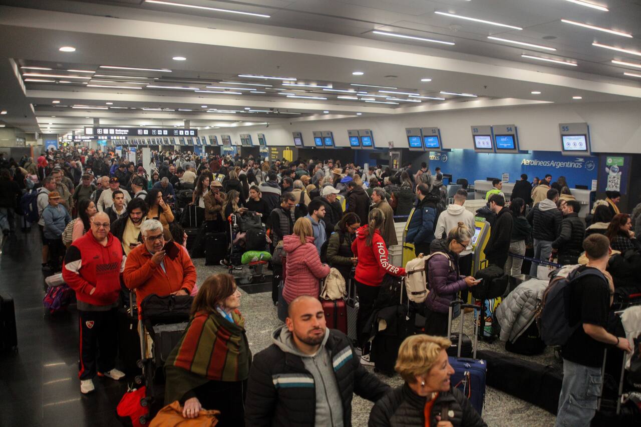 La medida la llevan adelante los trabajadores de Intercargo, a lo que se suman vuelos cancelados de Aerolíneas Argentinas en el aeropuerto metropolitano por reclamos extorsivos.
