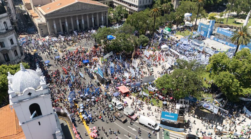 La movilización estuvo acompañada por la CTA y la CTA Autónoma; así como también, gremios independientes y organizaciones políticas y sociales. Es la cuarta protesta en contra de la gestión libertaria, que lleva dos años en el poder.