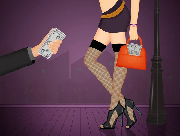 La prostituta con el billete en mano sale para: