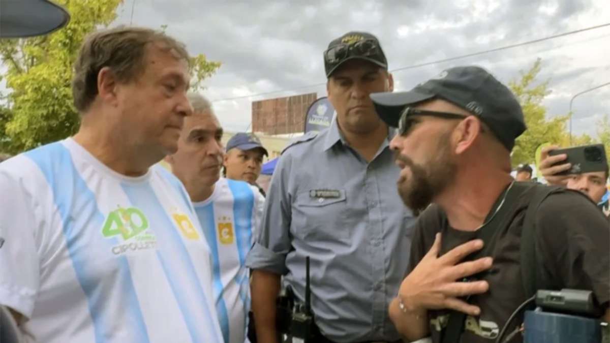 El incidente se produjo cuando Muñoz, acompañado por un grupo de manifestantes con pancartas que exigían mejoras salariales y el pago de la zona desfavorable, logró acercarse a la posición del mandatario provincial. Lo que comenzó como un reclamo a viva voz escaló rápidamente en una discusión cara a cara que captó la atención de los presentes y las cámaras de los medios locales.